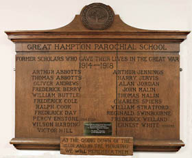Casualties Listed On Great Hampton Parochial School now in Hampton St Andrews C of E First School